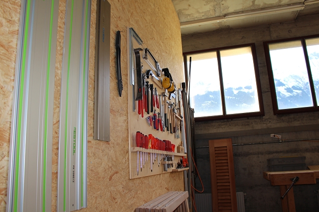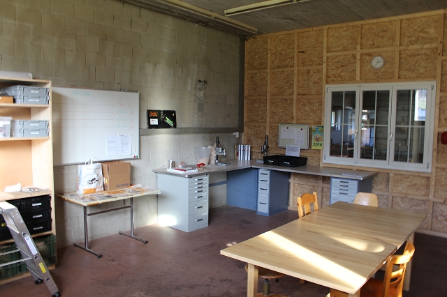 Die grossräumige Werkstatt in Frutigen dient als Basis und ist ideal gelegen zwischen beiden Wohngruppen von Achseten und Kandersteg.